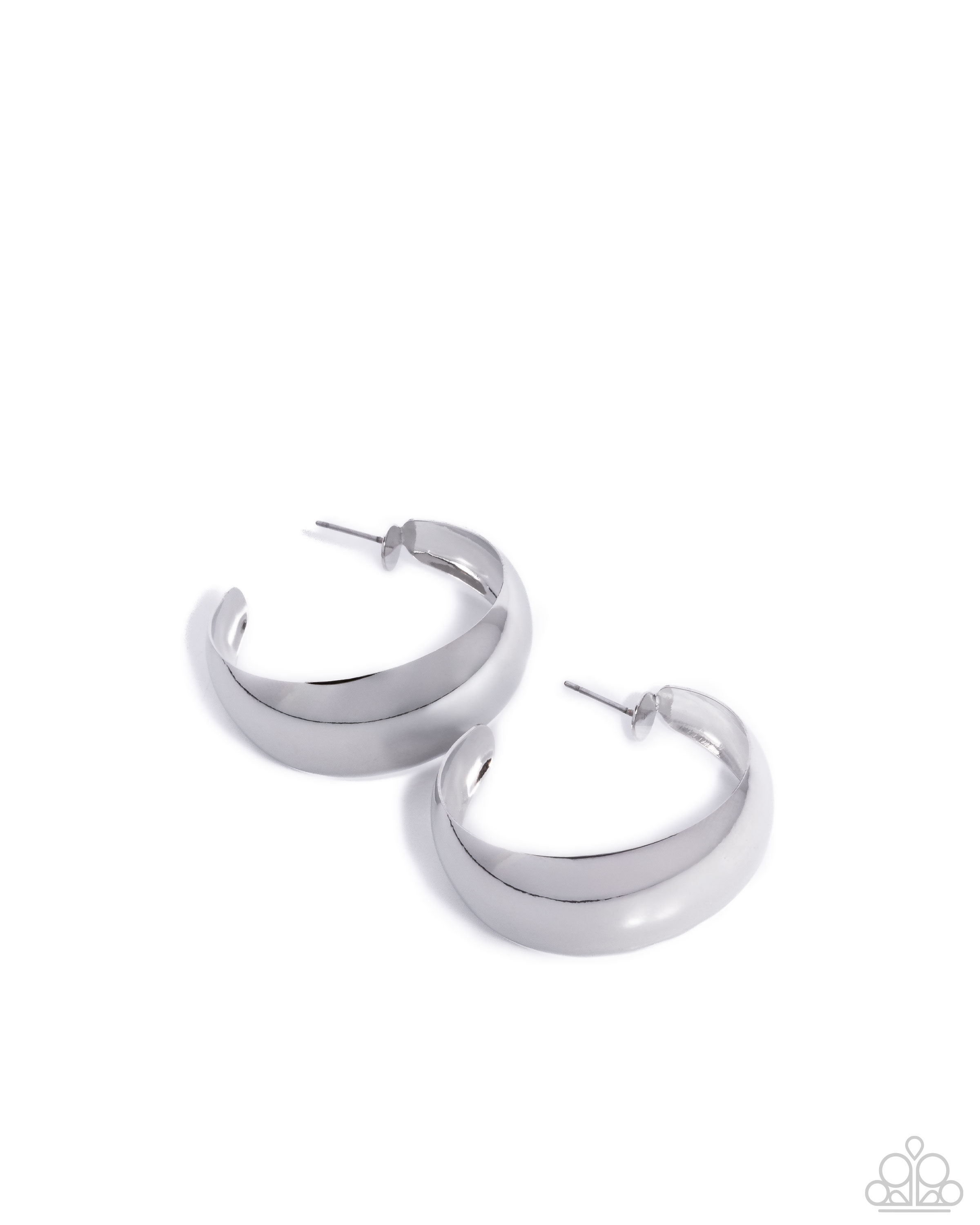 Featuring a high-sheen finish, sleek silver frames arc around the ear, adding a contemporary edge to any look. Earring attaches to a standard post fitting. Hoop measures approximately 1 1/2" in diameter.